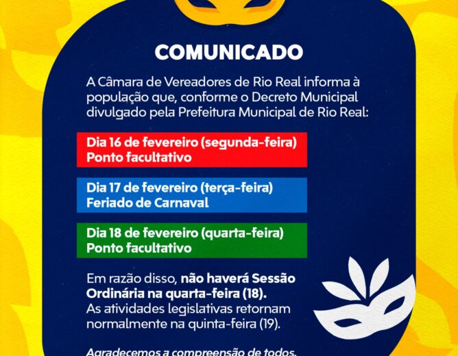 Câmara Municipal de Rio Real retoma atividades legislativas e reforça convite à participação popular