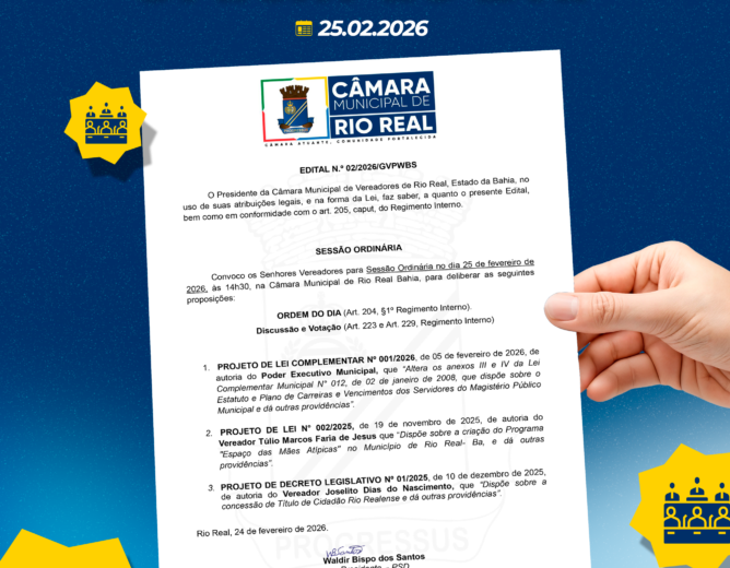 📍 Sessão Ordinária em Rio Real avança em pautas de inclusão, cultura e valorização profissional